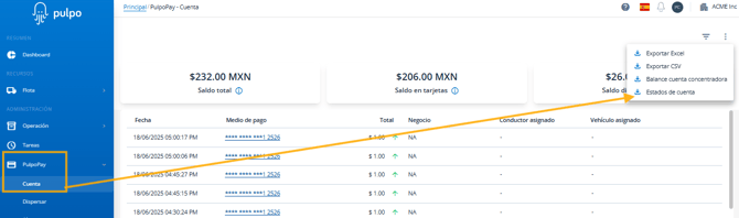 📄 ¿Cómo consultar y descargar mis estados de cuenta de combustible en PulpoPay?