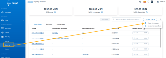 Ingresa a PulpoPay > Dispersar.