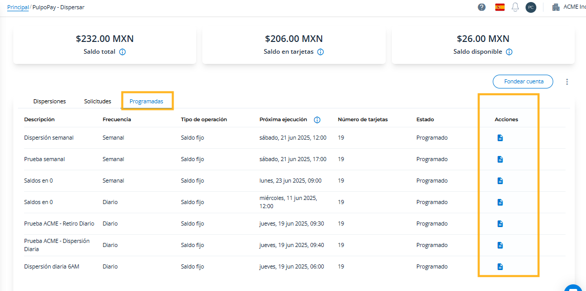 Todo se refleja en PulpoPay > Cuenta como movimientos dispersión/retiro.