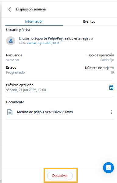 Toda dispersión masiva en PulpoPay es recurrente por configuración.