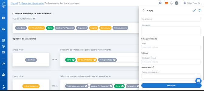 🔹 Pulpo permite actualizar automáticamente el estado del vehículo según su estado de mantenimiento, eliminando la necesidad de cambios manuales y asegurando que la información siempre esté actualizada en tiempo real.