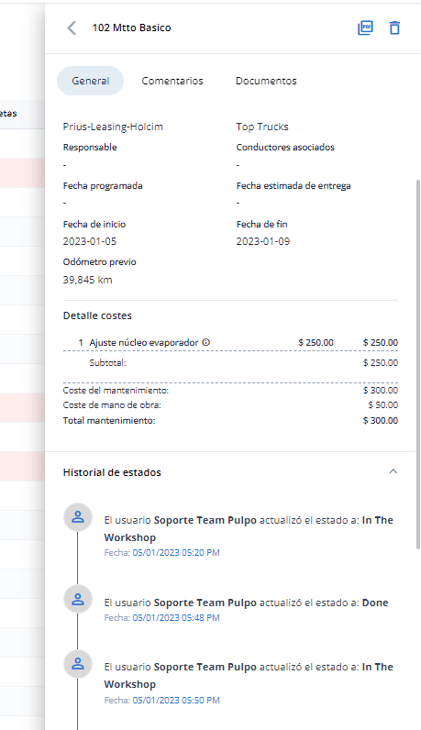 ¡Bienvenido a la sección de Mantenimiento en Pulpo! Aquí encontrarás todas las herramientas y funcionalidades necesarias para monitorear y gestionar las operaciones de mantenimiento en tu flota.