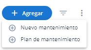 Una vez configurados los ajustes, puedes registrar mantenimientos preventivos o correctivos pulsando el botón "+ Agregar".